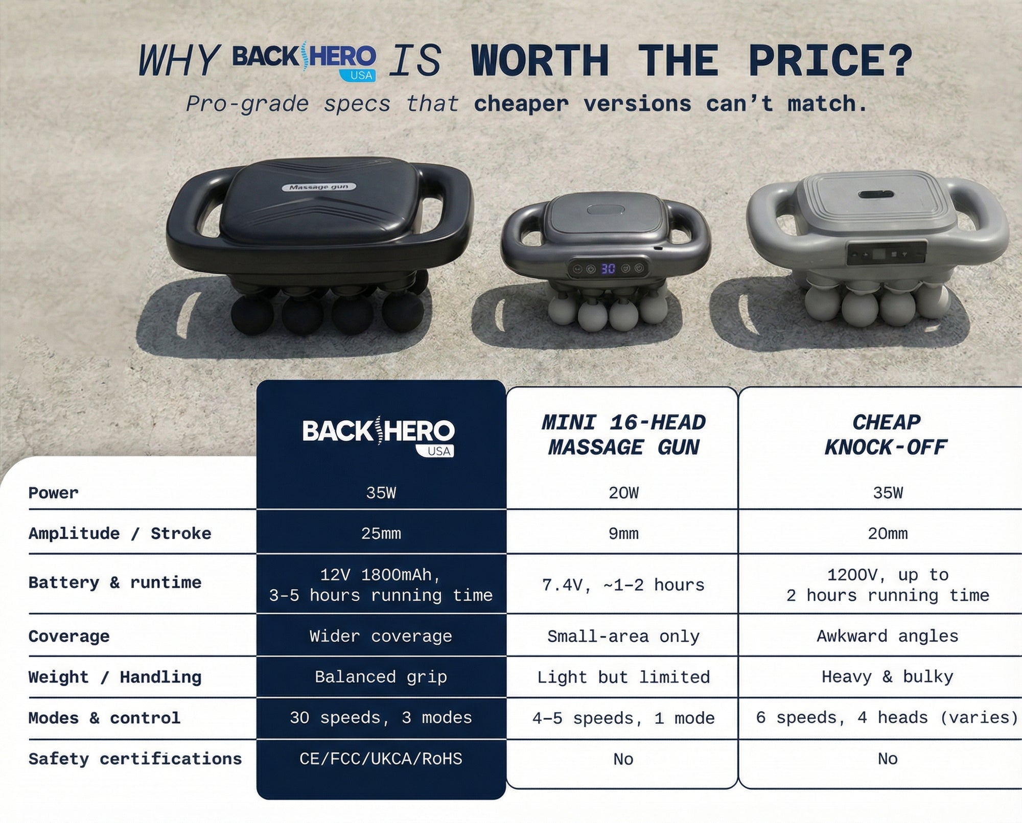 “Best massage gun brands” usually means brands known for reliable motors, comfortable handling, and strong warranty support. Our Back Hero USA 16-head massage gun focuses on broad coverage, adjustable speeds, and everyday recovery.