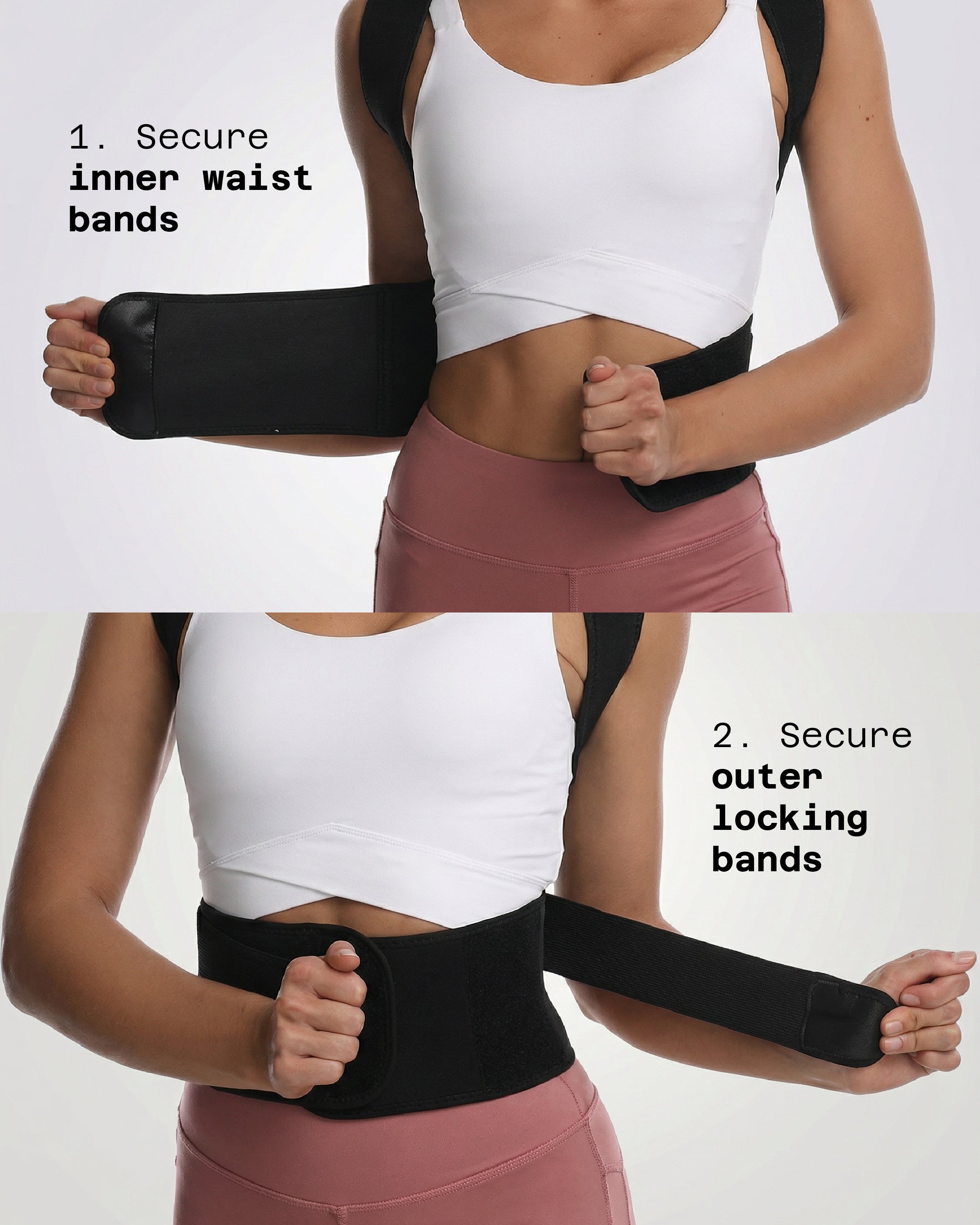 Put Posture Corrector on like a backpack and position the back plate flat.