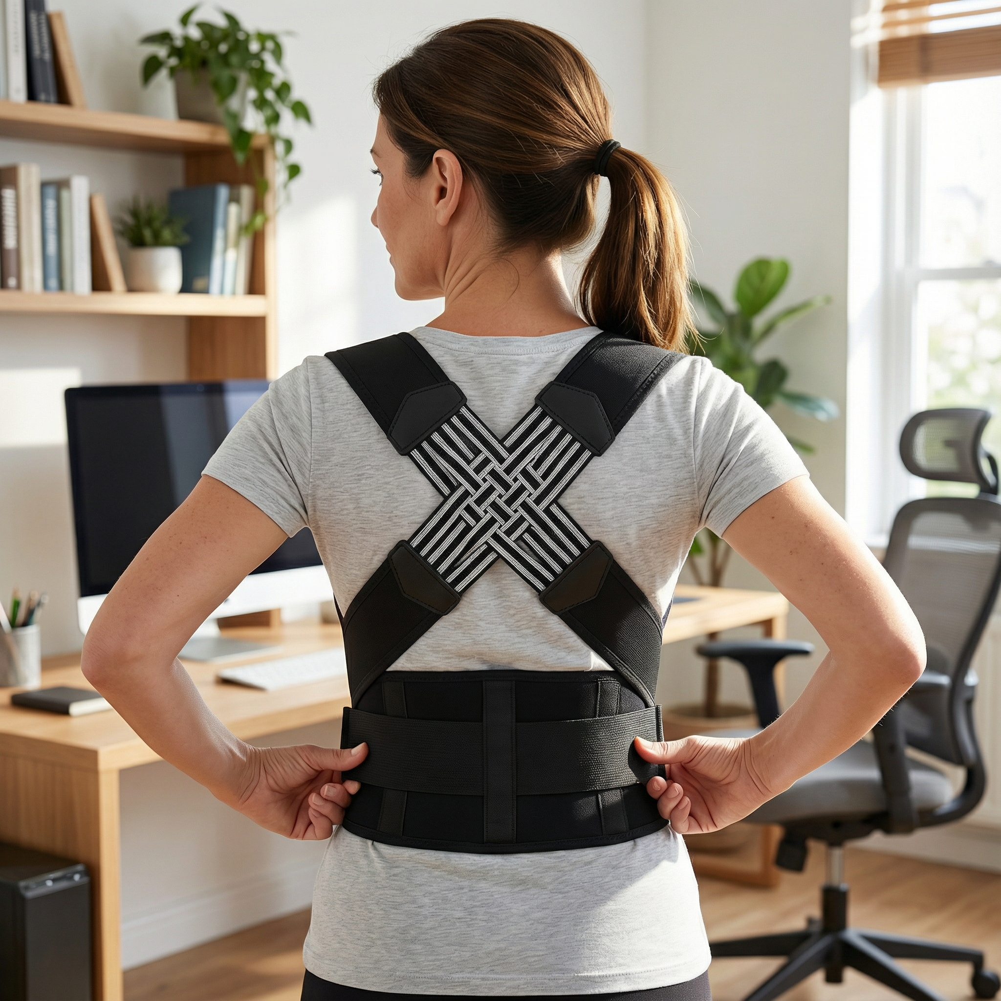 The posture corrector helps align your spine and shoulders, which can reduce tension and soreness caused by slouching, long sitting hours, or poor posture habits.